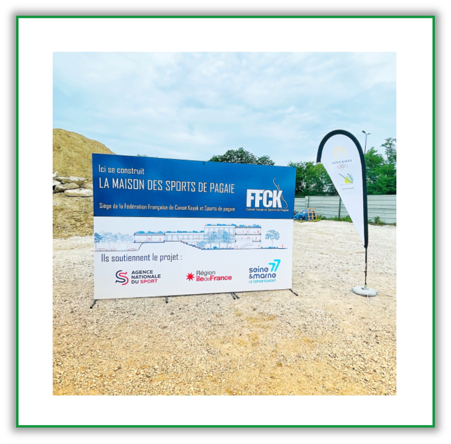 Mercredi 22 juin, à la base nautique de Vaires-sur-Marne, a eu lieu la cérémonie de la première pierre du chantier de la Fédération Française de Canoë-Kayak et Sports de Pagaie (FFCK) à laquelle ClimAGE était invitée. Pourquoi cette invitation ? Eh bien, car ClimAGE fait partie des entreprises retenues pour participer aux travaux de construction de la Maison des Sports de Pagaie. ClimAGE a notamment été choisie pour réaliser le lot CVC-Plomberie de ce bâtiment. Le projet a pour but de bâtir le futur siège de la FFCK en vue de recevoir les Jeux olympiques de Paris 2024.